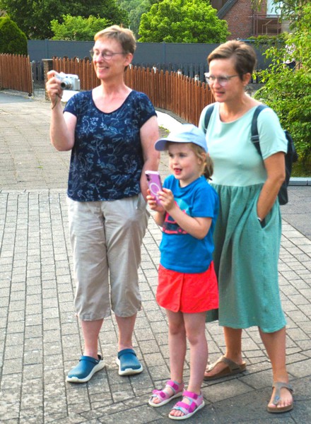 Diesmal und auch das erstemal fand das Vogelholen im Hof der Auferstehungskirche an der Uphofstraße statt. Beim Einmarsch des